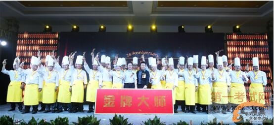 在新东方烹饪教育28周年庆典晚会中,为了这样一群“不简单”的人,设置了一个特殊的颁奖环节。由中国饭店协会副会长、新华教育集团常务副总裁许绍兵、新东方烹饪教育品牌形象大使黄渤亲自上台,揭开舞台上一块白板的红绸,用金勺,舀起金粉,缓缓撒上白板,接下来就是见证奇迹的时刻!白板上的字迹逐渐清晰,“金牌大师”四个大字显现出来。