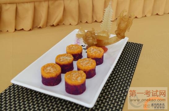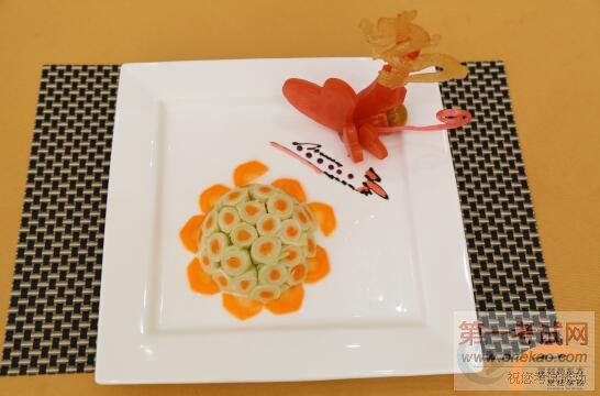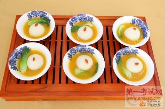 在两名同学的配合下,马钟鸣大师为同学们完成了一道“金汁豆腐丸”、“葵花泡菜”和“养生杂粮糕”。看到色香味俱全,颜色靓丽的菜品摆在展台上,很多同学不但被大师过硬的技能所折服,纷纷表示将继续努力学习,争取早日能够做出大师一样的菜品。