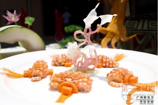 近日,广州新东方烹饪学校在南校举行了宴席作品展。同学们的作品可谓是丰富多彩。在这近百种作品中,最大的亮点,不是作品的数量,而是它们本身的创意,把美食与艺术完美的结合到了一起。