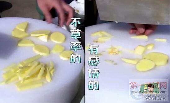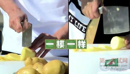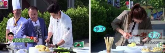 节目一开始,鹿晗、魏晨、ELLA、张丹峰、大张伟便迎来了他们的入学厨艺考试——炒土豆丝。考试现场搞笑不断。为了炒好一盘土豆丝,爱豆们与土豆各种互动,“拍抢摸削”,要多亲密有多亲密,小编怎么感觉这路人甲“土豆”才是最幸福的呢,我要做土豆,我也要零距离接触我家爱豆!