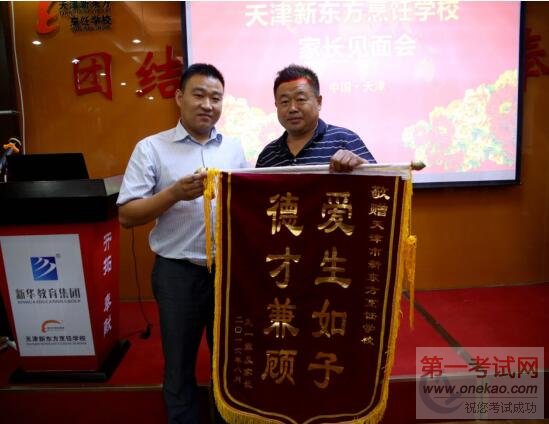 在座谈会临近尾声,学生家长还将两面锦旗送到了王校长的手中,以此感谢学校,为孩子提供良好育人环境:专业的教学模式,优越的教学环境。加上认真负责的老师,对学生们无微不至的照顾和关怀。坚信当初把孩子送到天津新东方学习的决定,坚信孩子在毕业的时候不但可以成功就业,更可以就‘好’业!锦旗虽轻,情意很重。 #