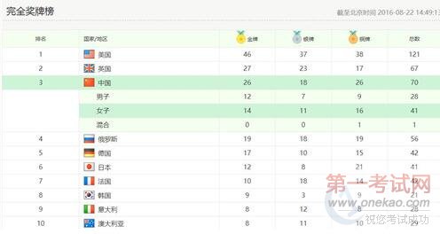 8月22日,2016里约夏季奥运会落下帷幕,中国代表团最终以26枚金牌、18枚银牌、26枚铜牌,落后于美国和英国,位居奖牌榜第三。