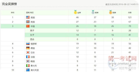 8月22日,2016里约夏季奥运会落下帷幕,中国代表团最终以26枚金牌、18枚银牌、26枚铜牌,落后于美国和英国,位居奖牌榜第三。