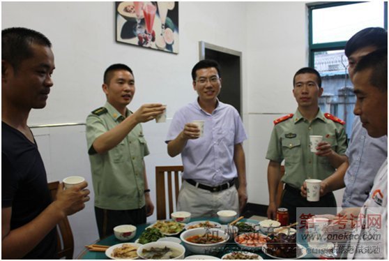 大家坐在一起边吃边聊,其乐融融、气氛非常活跃。没过多久,桌上的菜都被大家一扫而空,武警官兵对杭州新东方的菜肴赞不绝口,给予了高度评价。