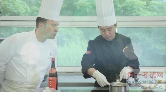 新东方烹饪学校马燚大师正在制作龙井虾仁