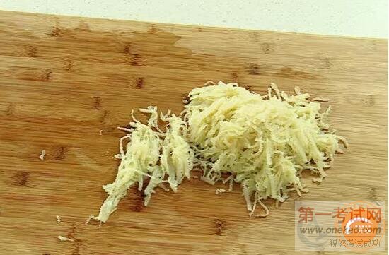 3.用醋10克,精盐1克将百叶丝拌匀,用力抓揉,去掉腥腻味,然后用冷水漂洗干净挤干水分。 #