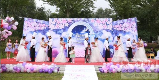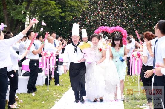 执子之手,与子偕老。2016年9月3日,由山西新东方烹饪学校主办的“幸福的味道,新东方制造”主题集体婚礼在晋祠公园隆重举行,6对佳偶分享幸福,共浴爱河。 他们用各自的幸福,让婚礼现场被爱点燃,用厨师特殊的方式,共同见证爱情的誓言。