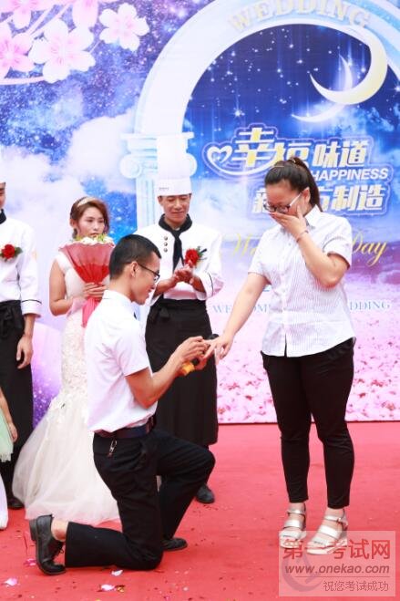 但是,今天看到他们,小编发现一个真正给你安稳的生活,默默陪伴在你身边的男人,要比“我爱你”来得真实的多。因为一辈子很长,长到我们不可能天天下馆子吃外卖,而拥抱一个爱煮饭的男人,才是得到了一张真正的长期饭票。所以,遇到新东方厨师,就嫁了吧!这不,现场就有两对热恋中的爱人,求婚成功。
