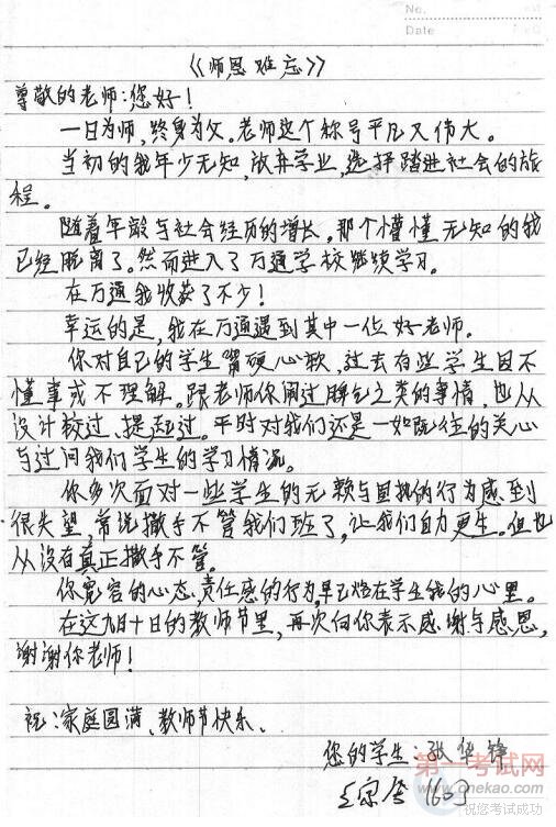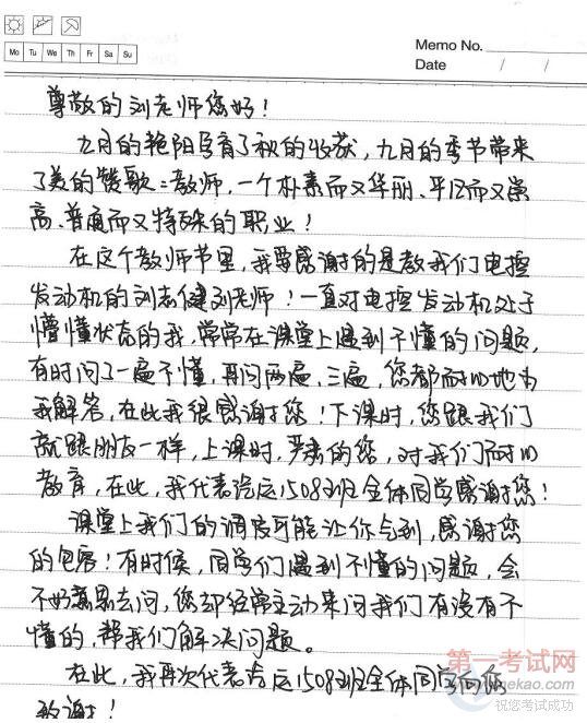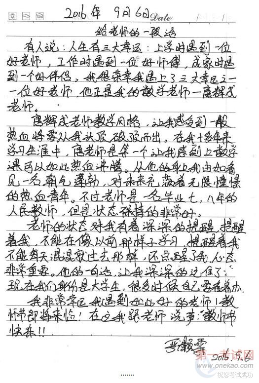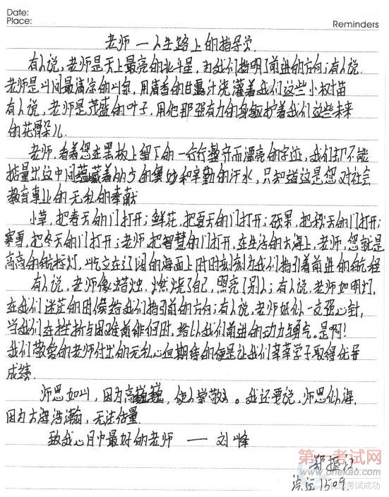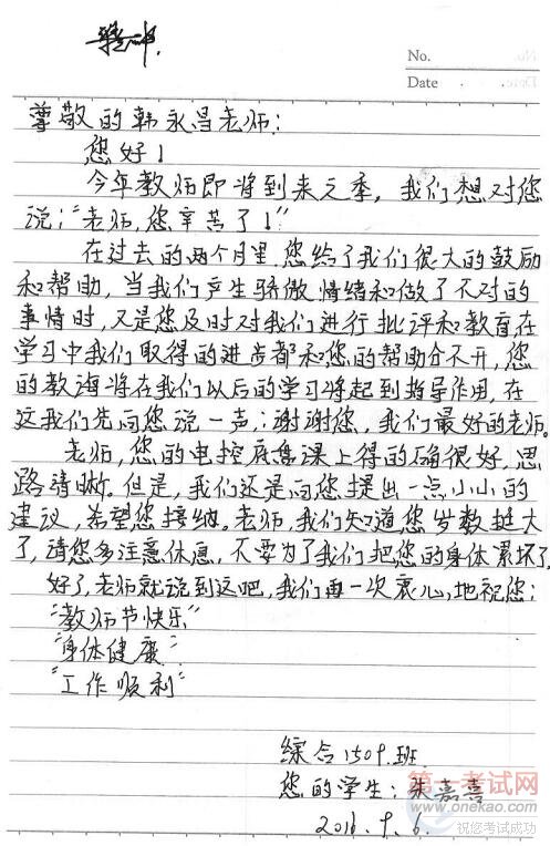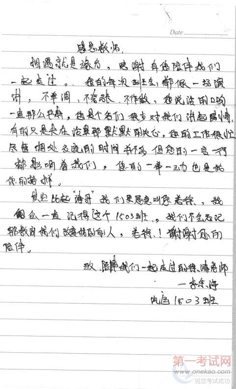 (汽运1503班李东海写给徐涛老师的信) #