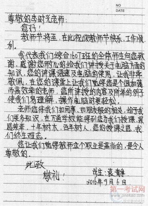 (学生写给班主任段官泰老师的信) #