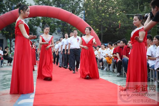 晚七时整,典礼在气势恢弘的欢迎进行曲中拉开序幕,众领导在礼仪人员地引领下走向主席台,全场毕业学子掌声雷鸣,经久不息。时尚动感的开场舞《水鼓》、武术表演《剑舞》开启庆典小高峰,台下金牌1601班学子直言“新东方的晚会果然逼格高!”
