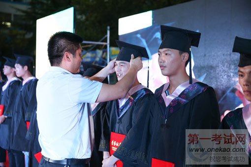 接下来是庄严肃穆的优秀毕业生荣誉颁发及拨穗正冠环节。毕业学子们身穿学位服,头戴学士帽,陕西新东方教务处孟主任、市场部陈主任分别为大家颁发学位证书并握手合影留念。振华校区何主任满含深情,一一为优秀毕业学子拨穗正冠以资鼓励,学子眼中泪花点点,难舍母校情深。