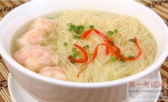 云吞面又称馄饨面、细蓉、大蓉。是广东省的汉族特色小吃,属于粤菜系。一般以云吞拌面,分为汤面与捞面。云吞面是一种在中国十分普遍的食品。以煮熟的馄饨和蛋面,加入热汤即成