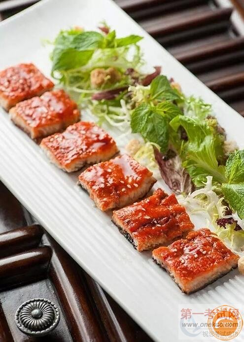 这道香烤鳗造型清新,鳗鱼肉色泽亮丽,外酥里嫩,香味浓郁。