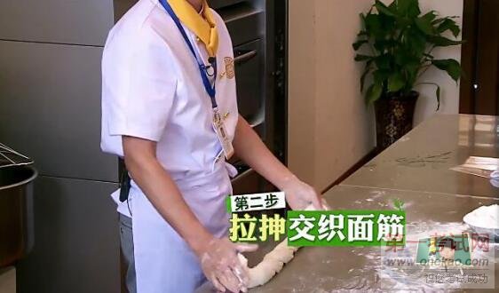 第二步:要把揉好的面进行拉抻,再把拉开的两道面筋交织起来 #