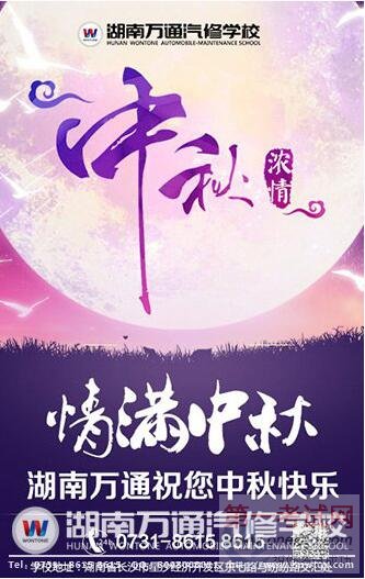 月到中秋分外明,在这中秋月圆之际,在这亲朋团圆之日,湖南万通汽修学校提醒大家别忘了给亲朋好友老师同学送上诚挚的祝福哦。天上月圆,人间团圆,家庭情圆,心中事圆,左右逢圆;愿你在每一天中,人缘,情缘,福缘,财缘,缘缘不断,事事如意;湖南万通祝大家中秋快乐,梦想成真,万事如意! #