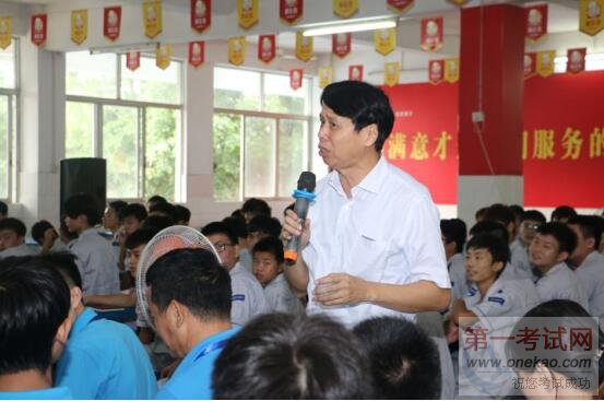 戏称全场唯一一位女生为“校花”,并对其进行热情鼓励说:“全国汽修技能大赛的冠军连续三年都是女生,真是巾帼不让须眉!”