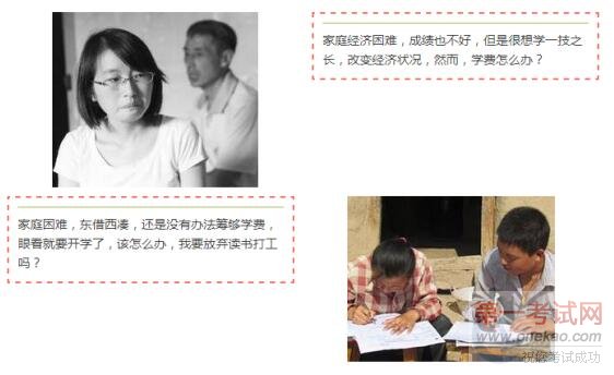 针对以上家庭情况较为特殊的学子,我校将为你申请,让你参与到助学贷款系统。凡年龄未满18岁的,由父母贷款;年满18周岁的,自己贷款。贷款的学费是每月分期还给银行,并承担一点银行利息。 #