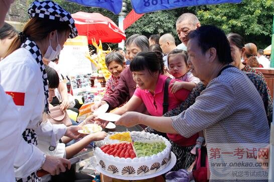 今天的启动仪式上,经典西点专业的学子更是现场演示了水果蛋糕的制作手法,从打奶油、抹蛋糕胚、裱花……每一个环节都娴熟有序,不出十来分钟,一个造型精美的蛋糕就呈现出来,赢得了现场热烈的掌声。在大家的欢呼声中,经典西点专业的同学们向现场的每一位市民朋友们送上了一份美味的蛋糕,供大家品尝。也让所有的市民朋友们感受到来自新东方制造的幸福味道!#p#分页标题#e# #
