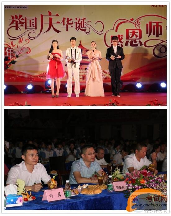 2016年9月28日晚上19点30分,由广州新东方烹饪学校举办的“举国庆华诞,感恩师生情“国庆晚会在北校区隆重举行。我校鲍校长及各部门负责人与师生们一同观看了本次晚会。