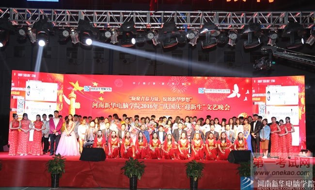 9月29日晚,由河南新华电脑学院举办的“庆国庆·迎新生”大型文艺晚会在学院综合运动场隆重上演。河南新华电脑学院院长吴凤霞、院长助理曾海涛、教务处主任王洪蛟等领导同全体新华师生齐聚一堂观看了精彩绝伦的演出,共贺伟大祖国67岁华诞,共迎2016级秋季新生!