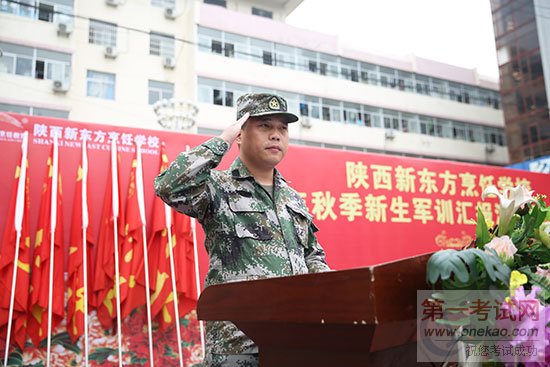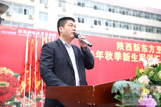 军训动员大会开幕式上,首先由军训团团长做开训动员讲话,其次是教官代表发言。军训团长和教官对同学们给予了很高的厚望,希望同学们在此次军训中能克服困难,战胜自己。陕西新东方振华校区校区主任何大成代表陕西新东方烹饪学校全体教职员工,向前来参训的教官们表示崇高的敬意!向辛勤工作的班主任老师表示衷心的感谢!向参加军训的全体同学致以诚挚的慰问。何主任对参加军训的全体同学提了以下几点要求: