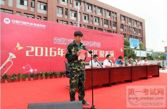 安徽万通汽车专修学院副院长廖光宙,对这次军训进行了总结:“在这次军训过程中,同学们表现了顽强拼搏、吃苦耐劳的精神,为这次的军训交上了满意的答卷。这是同学们努力的结果,是教官和老师悉心指导的结果……通过军训培养同学良好的素质和团结协助的精神,希望同学们能够将军训精神延续到以后的学习、生活中,做一名自主、自立、自强、自信的高素质汽修人才。” #