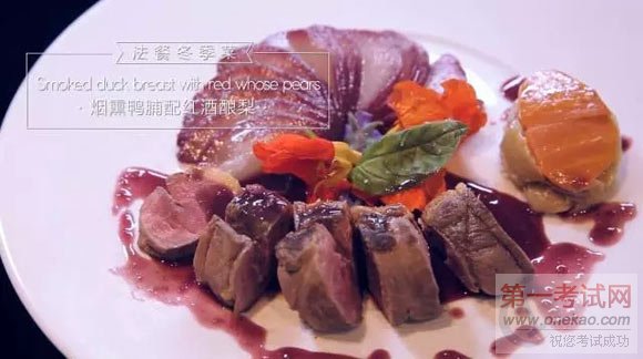 巴卡尼尼先生的这道烟熏鸭脯配红酒酿梨,和中餐传统的一鸭三吃、一鸭四吃还真有着异曲同工之妙呢。