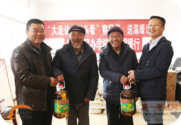 2016年10月28日清晨,天微微亮,早霜微醺,来自兰州市民办教育协会的成员单位代表——甘肃新东方烹饪学校严茂国主任、兰州商业会计学校祁绪校长、兰州敦煌艺术学校杨扬校长、兰州财经法律学校俞力天书记等四所学校一行人在兰州市教育局成教处副处长汪宏玮的带领下,驱车前往榆中县北山上花岔乡黑虎子村。此番行程是由兰州市教育局倡议,兰州市民办教育协会组织,兰州市民办学校积极响应各级党委“大走访、回头看”的号召而开展的“敬老温暖行”公益活动。
