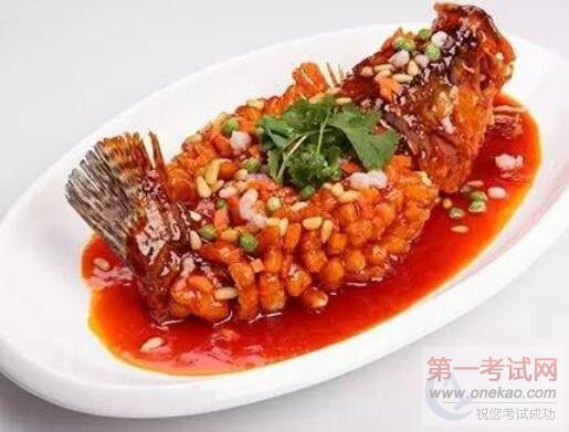 “松鼠鳜鱼”是江苏苏州地区的汉族传统名菜,属苏菜系,色泽金黄,形似松鼠,外脆里松,甜中带酸,鲜香可口。