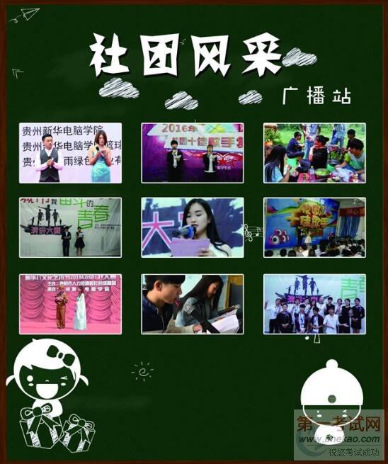 丹桂飘香,秋高气爽,多姿多彩的校园生活随即起航,贵州新华电脑学院丰富多彩的社团生活也拉开了序幕,多才多艺的2016届新生即将加入校园社团这个温馨的大家庭中。