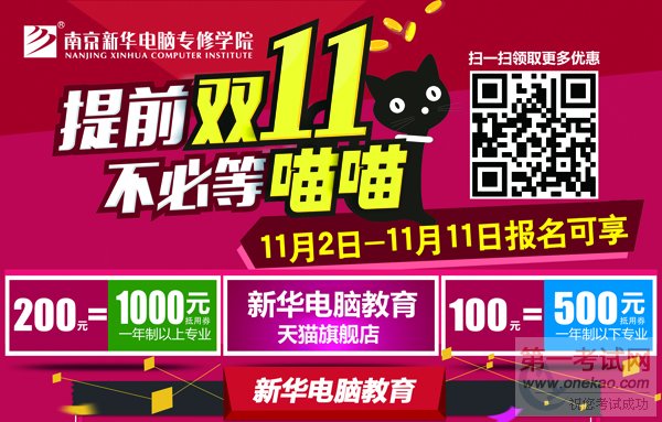 南京新华电脑专修学院:喵喵~洪荒之“利”!双11,买券上学去!