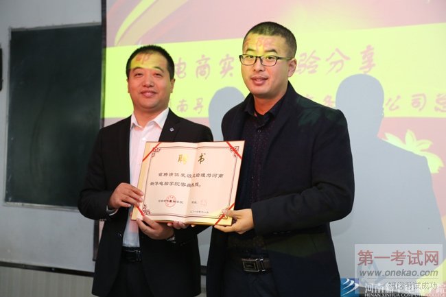 据悉,伍老师拥有10年互联网产品开发、运营、管理经验,历任大型医疗机构网络运营总监、教育机构网络运营总监,在2015年创办了国内最大茶类B2B平台茶到店,并且茶到店项目在2016年5月荣获了2016郑州国际创新创业大赛优秀项目奖。伍老师丰富的一线实战创业经验和互联网运营知识获得了历来重视培养学生实战能力的河南新华电脑学院的肯定,在讲座上,教务处主任王洪蛟代表学院为伍老师颁发了聘书,伍老师受聘为学院的客座教授,将会给新华学子带来更多、更精彩的互联网与电商干货。 #
