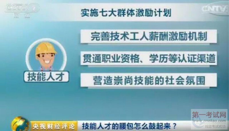 具体措施方面,其中对技能人才的激励计划为:完善多劳多得、技高者多得的技能人才收入分配政策,引导加大人力资本投资,提高技能人才待遇水平和社会地位,大力弘扬新时期工匠精神,培养高水平大国工匠队伍,带动广大产业工人增技能、增本领、增收入。完善技术工人薪酬激励机制,贯通职业资格、学历等认证渠道,营造崇尚技能的社会氛围。 #