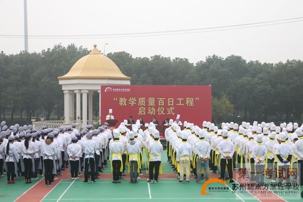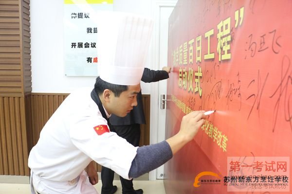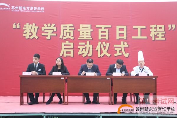 十年树木,百年树人。教育是兴国安邦的基础,是文明传承的纽带,是塑造灵魂的沃土。而教育教学则是学校的核心工作,关系到每一位学生切身利益和长远发展,更是每一位教师核心价值的体现。为统一师生思想认识,强化质量立校意识,调动“教”与“学”双方的积极性,创建优良的教风 、学风和校风,全面提高教学质量,2016年11月14日上午,苏州新东方烹饪学校隆重举行了“教学质量百日工程”活动启动仪式。