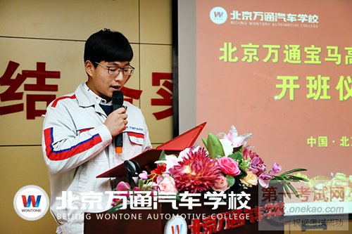 宝马高级研修班班长带领全班同学宣誓,并展示了班级口号,“我们立志勤学知识,苦炼技能;我们一定要成为行业精英。”豪言壮语代表了同学们的心声,也展示了万通学子良好的精神面貌。 #