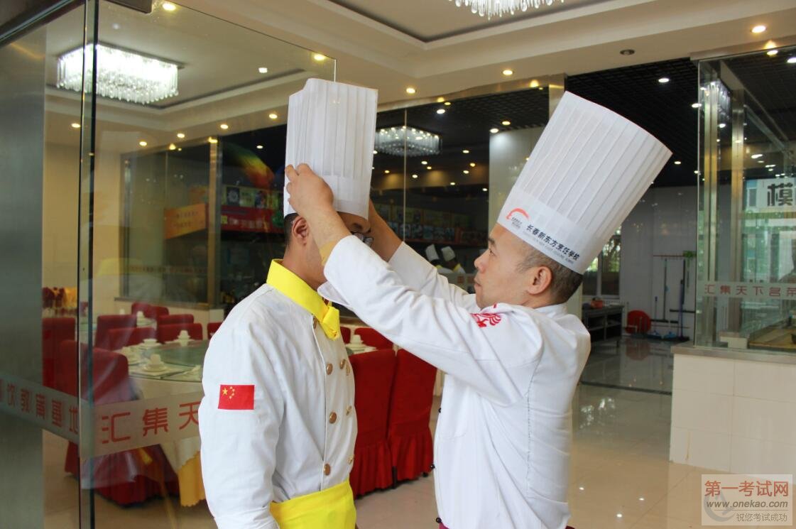 一天的学习生活开始了。老师为他调整一下没有戴好的厨师帽,同时也是对他无声的提醒与教诲,时刻注意每一个细节。 #