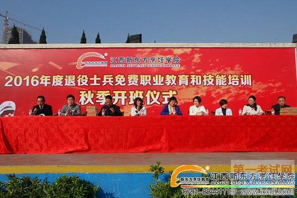 在这秋高气爽、阳光灿烂的收获季节,江西新东方烹饪学院青云谱校区内,军歌嘹亮,掌声阵阵。今天,来自全校367退役士兵学员在这里隆重举行2016年度退役士兵免费职业教育和技能培训秋季开班仪式。南昌市民政局退伍安置处余梅科长,南昌市财政局陈小重科长,南昌市财政局梅文静科长,南昌市人保局樊青华科长,江西新东方烹饪学院院长助理喻军辉,青云谱校区负责人董思明主任,教务处尹金富主任,学院创就业指导中心王福军主任,对外合作部刘勤顺主任等领导拔冗出席。 #