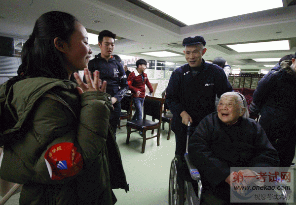 却挡不住敬老之情;寒风瑟瑟,吹不散爱老之意。刚到敬老院,同学们便立即的行动起来,他们或搀着、或推着、或扶着老人们到休闲区就坐。一开场,同学们为老人们呈现了精心准备的暖心手语《感恩的心》,把早晨的清寒驱赶干净。不过,令老人们最开心的还是歌舞表演,一位精神矍铄的老爷爷演唱的歌曲浑厚动听,同学们伴着歌声翩翩起舞,休闲区内响起了老人们热烈的掌声。台下一位老奶奶开心地说:“她们跳得很好,而且这么冷的天气,一大早赶过来,真的很有心!”