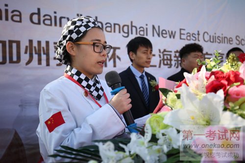 接着由上海新东方烹饪学校校长上台为开幕式致辞,曹校长表示校企强强联手一直是上海新东方的办学理念,相信在未来上海新东方与加州乳品协会的合作还会继续深入。曹校长还对即将比赛的同学们给予鼓励,希望他们不要有压力,发挥正常水平。