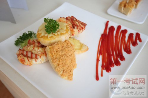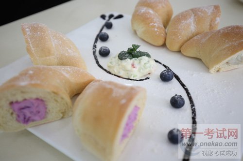 经过两小时的紧张比赛,西点学院早已被面包香味充满。一款款摆盘精致,造型各异,夺人眼球的芝士面包等待着评委老师的评分。面对这些同样优秀的作品,老师从造型、色泽、口味等方面一一打分。