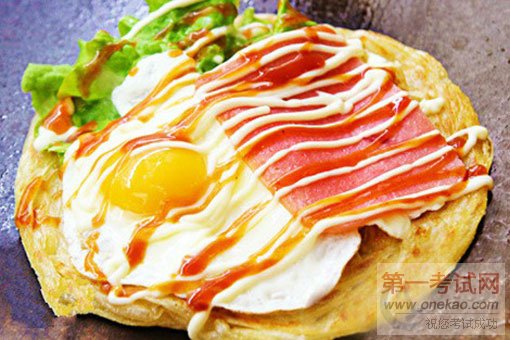 手抓饼,新鲜出炉后千层百叠,层如薄纸,用手抓起,面丝千连。外层金黄酥脆,内层柔软白嫩,一股葱油与面筋的香味扑鼻而来,让人来不及等待,抓起就吃,故曰手抓饼。搭配鸡蛋、培根、蔬菜等辅料等,老少皆宜。