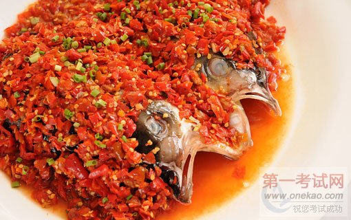 据西安新东方厨师学校老师介绍。剁椒鱼头的出处,可以追溯到清代雍正年间,反清文人黄宗宪因文忌“文字狱”而出逃。路上途经湖南的一个小乡村,借住在一个贫苦的农户家。农夫从池塘中捕回一条胖头鱼,农妇便用做菜来款待黄宗宪。鱼洗净后,鱼肉放盐煮汤,再用自家产的辣椒剁碎后与鱼头同蒸,不想黄宗宪吃了觉得非常鲜美,无法忘怀。事平回家后,便让家厨将这道菜加以改良,于是便有了今天的“剁椒鱼头”,并成为湘菜蒸菜的代表。