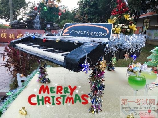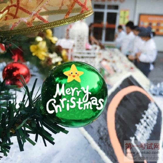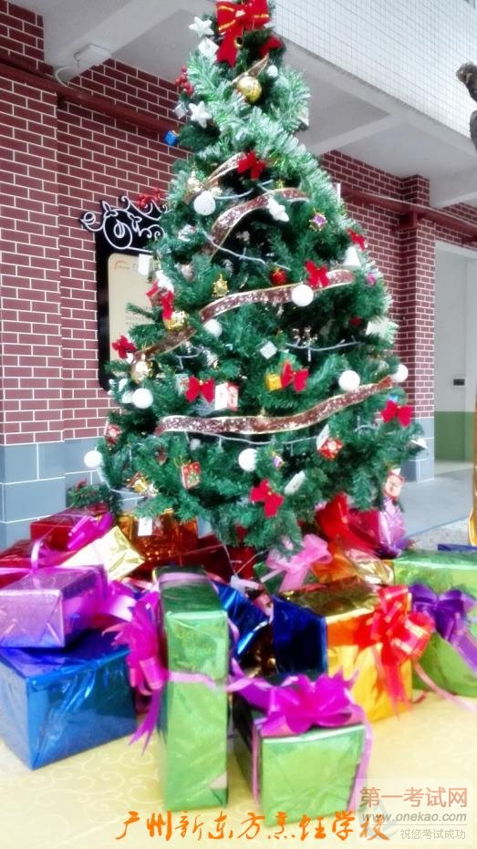 新东方人以红、绿、白三色为圣诞色点缀着校园,用常青树装饰而成的圣诞树,上面悬挂着五颜六色的彩灯、礼物和纸花渲染出轻松欢快的氛围。