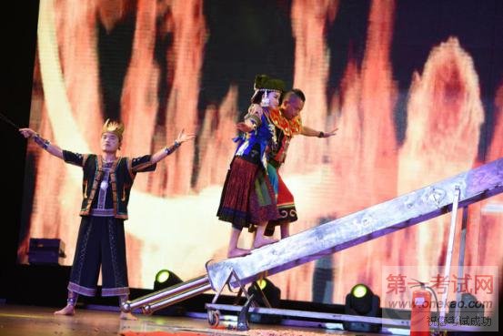 贵州绝技绝艺表演艺术团带来的苗族《锦鸡舞》、彝族《铃铛舞》、苗族矮桩舞《地龙滚荆》以苗族原生态歌手韩灵花《苗族飞歌》,把多情、古老、和谐、幸福的贵州展现出来,让人陶醉。贵州绝技绝艺表演艺术团还带来惊险的苗族绝技《上刀山下火海》、《眼皮轻功》,中国十大奇人、苗族绝技王子杨光合赤脚斜走大刀、踩灯泡用眼皮吊桶让人看得心惊胆战。 #