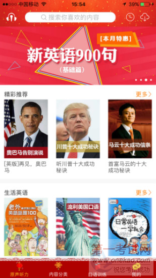 #p#分页标题#e# 本次功能迭代内容如下:1、新年版英语口语精华皮肤;2、支持转发播放的H5页面;3、推送、版本更新提示界面优化;4、口语云打分功能上线;5、软件使用引导;6、百余个内容提供商入驻。