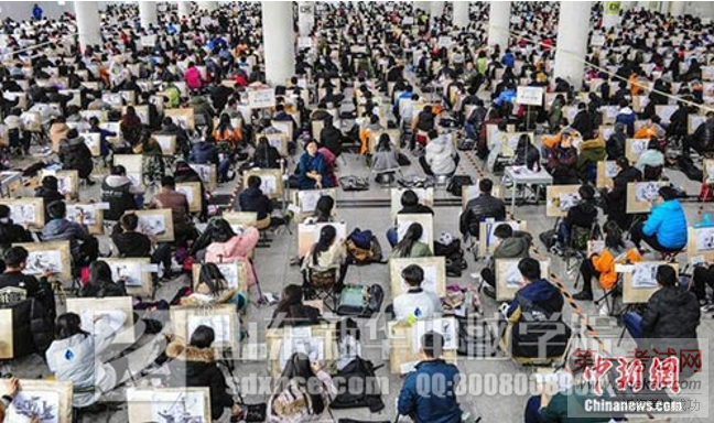 今天,在山东工艺美术学院济南考点,近7000名考生同堂作画,笔圆大学梦。