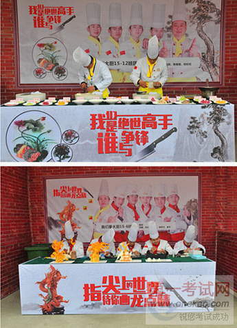 一饱口福过后,再欣赏由同学们给大家带来的刀工与雕刻表演,接下来到时尚西点的展台,观赏各种精致细腻的西点作品,并拍照留念,想想真有点小激动呢!