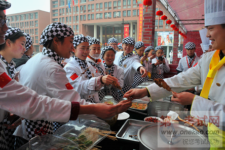 这次的美食直通车共有“时尚西点”、“雕刻表演”、“刀工表演”、“特色卤烤”、“特色烤鱼”、“徽风皖韵”以及“舞动青春”七个特色展台,大家在这里不仅能够品尝到美味的特色小吃,同时还可以现场欣赏到同学和大师们的精彩表演。 #