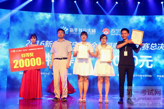 新华教育集团副总裁沙旭为特等奖获奖队伍颁奖并合影 #